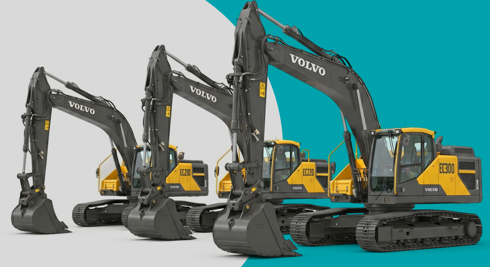 - EC300: решение для тяжелых условий. Рабочий вес – 30 тонн и более, мощность двигателя до ≈170-180 кВт, объем ковша до 1,8-2,2 м³. Эффективен на карьерах и при больших объемах разработки.